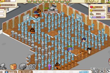 3、该摆法是65个货架,没打双面四面和八面,因此,共计是65面,每个货架售货为1,故迎接1星媒婆最大销售货物量为:65*4=260个,其收益为13000元,再迎了一次普通客人,三星店人数量为19人,每人购买65货量,总销售量为19*65=1235个,其收益为28600元(这个我试了10次,10次的收益相同)。