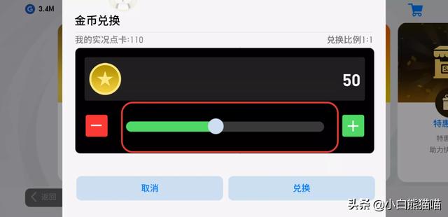 第三步拖动进度条或者点击±号,兑换想要兑换的金币数量