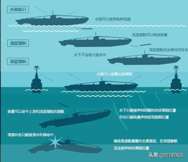 游戏里面的潜艇的操作也非常重要,潜艇没有必要跟航母或者其他战舰硬碰硬,只需要绕道战舰后面。等到战舰的一波输出打完直接冒头贴脸,打出所有的火力,等到对方在进行导弹装填的时候迅速离开。