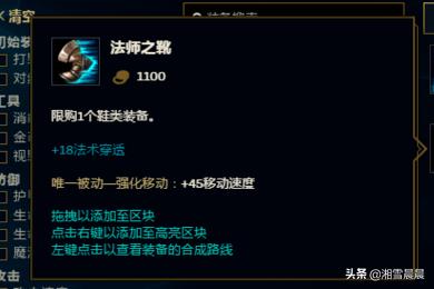 2、法师之靴,法穿鞋可以增加牛头在上单位置的移动速度,而且还能提供一个不错的法穿,在前期的话,上单位置魔抗还没有堆很多的时候,一双法穿鞋打出的伤害还是非常的高的。