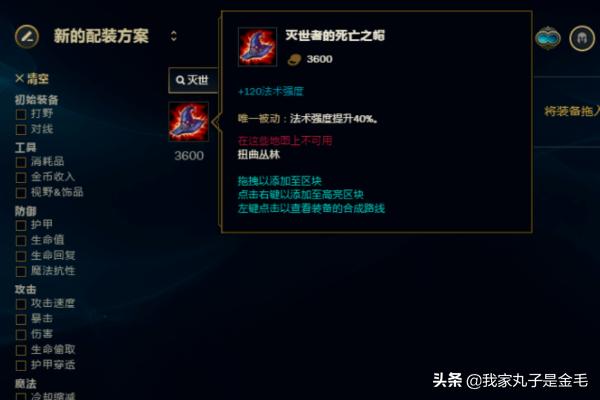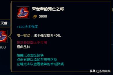 6、灭世者的死亡之帽,因为我们一身装备都是出的输出装,AP非常的高,在加上大帽子的40%的AP加成,可以让牛头的AP变得非常的高。