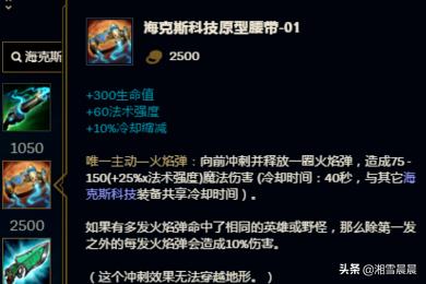 1、海克斯科技原型腰带-01,对于牛头来讲,打上单的话,主要还是依靠技能的爆发来打输出,这里比较推荐大家除一个推推棒,这样可以提高他的灵活能力,而且还能提高他的血量和减CD,非常的不错的一个装备。
