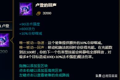 4、卢登的回声,这个装备可以增加牛头的移动速度,而且还能增加一小部分AOE伤害,当然最关键的还是一个20% 的减CD,配合上之前的减CD装备,就达到了40%的满CD。